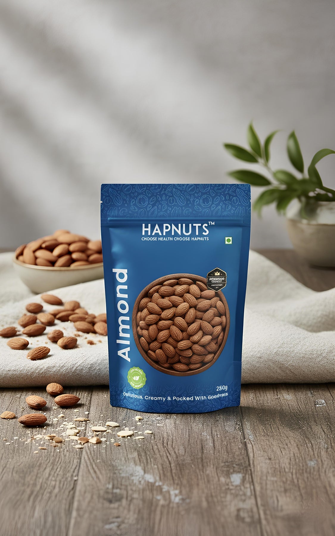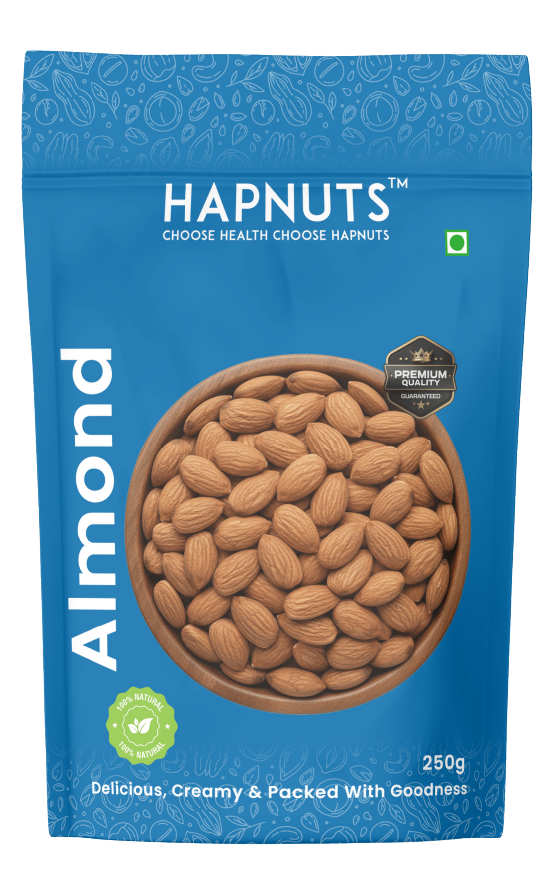 Hapnuts Premium Almonds are 100% natural, handpicked, and packed with rich taste and nutrients. A powerhouse of protein, fiber, and vitamin E, these almonds are perfect for boosting energy and supporting overall health. Enjoy them as a quick snack, blend them into smoothies, or pair them with warm milk at night β€” Hapnuts Almonds make every moment healthier.